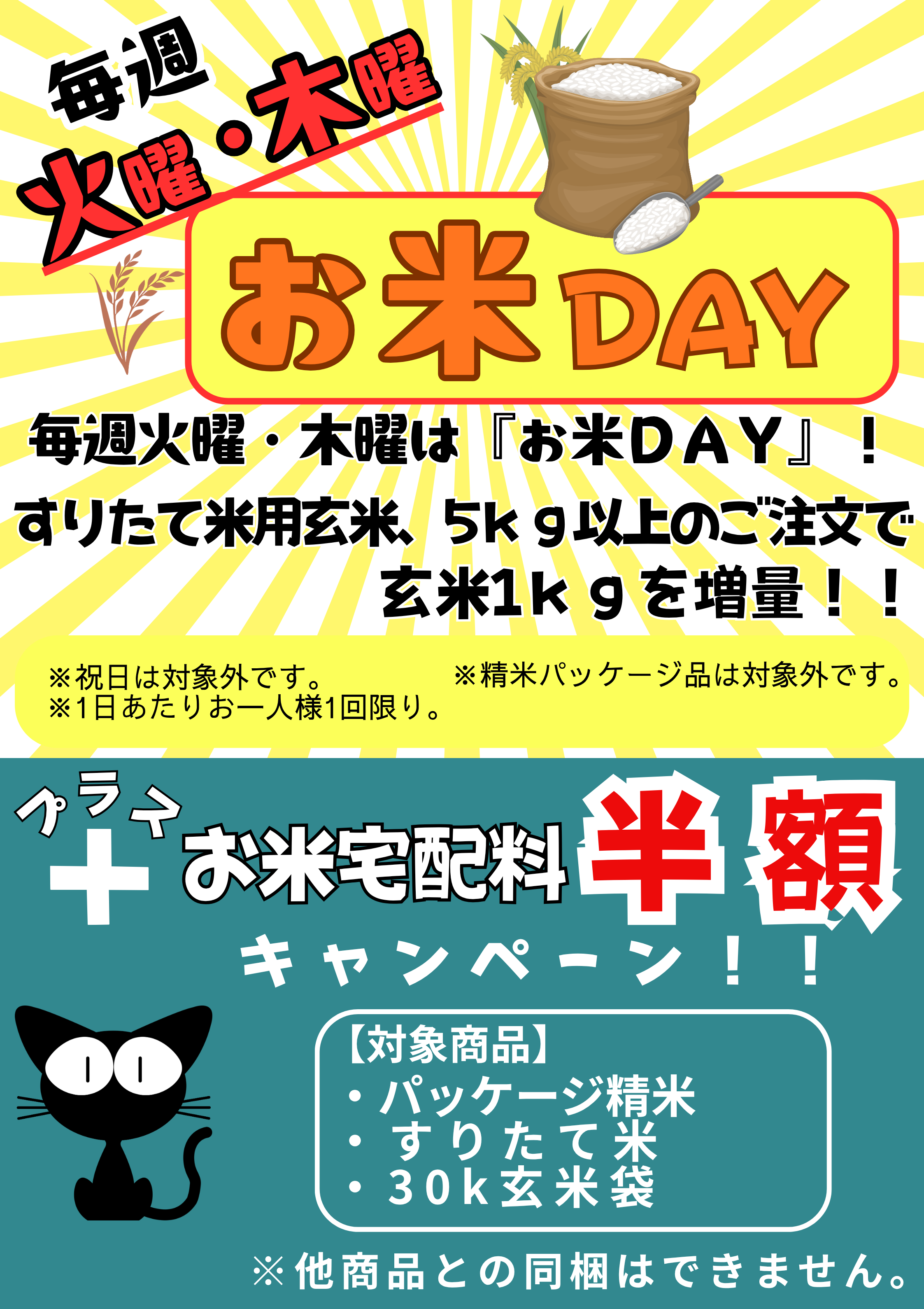 【毎週火曜日・木曜日】 お米DAY + お米宅配料半額