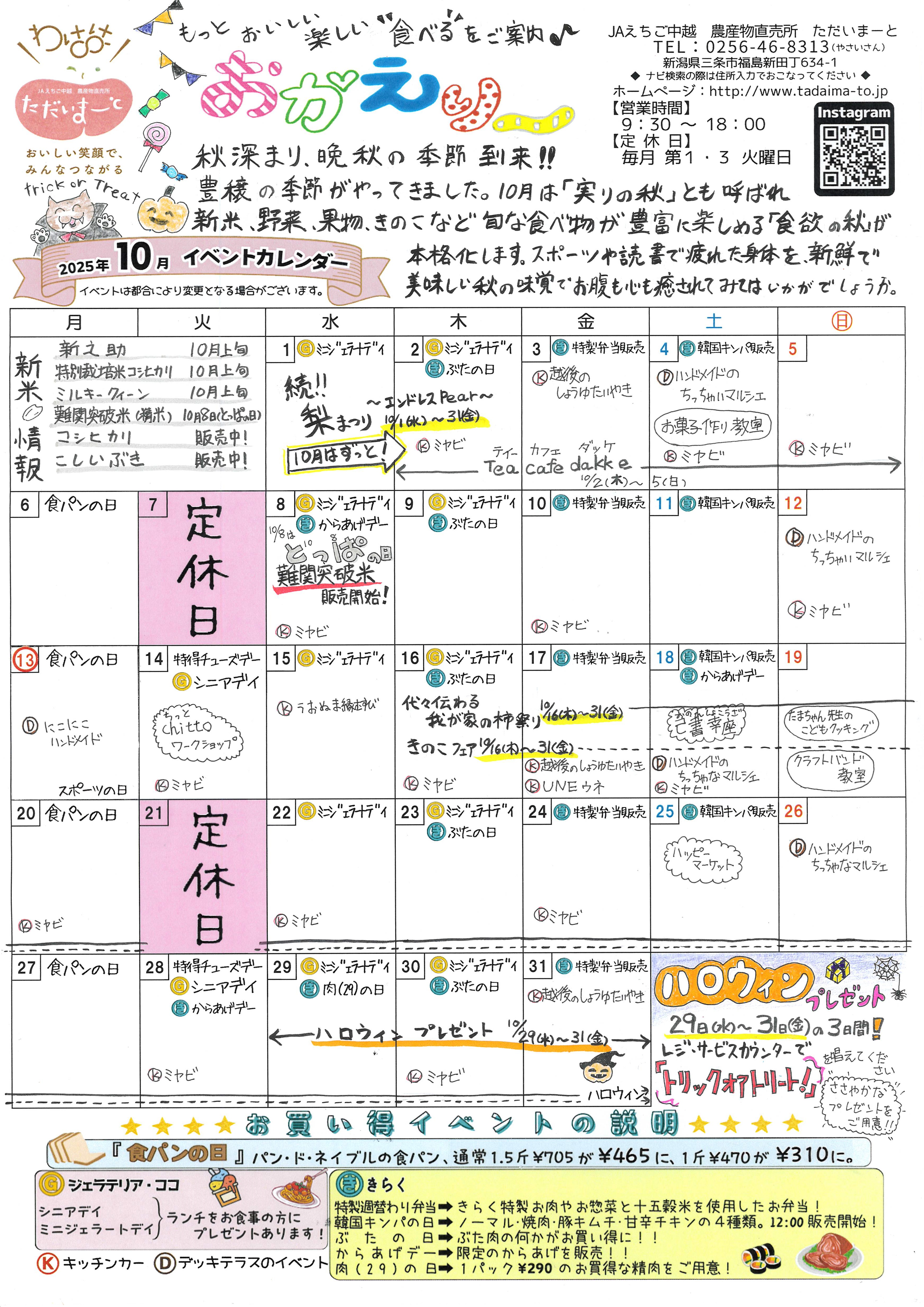 ただいまーとイベントカレンダー10月